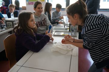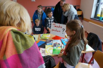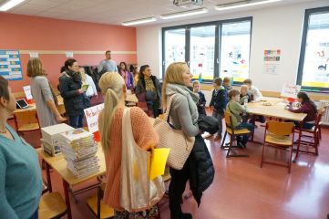 In den verschiedenen Räumen sowie der Aula und der Turnhalle wurde aus den Fächern (z.B. Naturwissenschaften, Sprachen und bilingualer Unterricht, Musik, Sport u.a.) und aus Arbeitsgemeinschaften und weiteren Bereichen des Schullebens (z.B. individuelle Förderung, Sprachaustausch und Auslandsaufenthalte, SV-Arbeit, Gestaltung der Mittagsbetreuung) unser umfangreiches Schulprogramm von Lehrern, Eltern und Schülern der Schule präsentiert. Dabei konnten die Viertklässler an vielen Stellen selbst mitwirken. Während dieser Zeit bestand natürlich die Möglichkeit, mit Fachlehrern und Fachkoordinatoren über die individuelle Schullaufbahn des Kindes ins Gespräch zu kommen und über Themen wie die Gestaltung der Übermittagbetreuung und weitere schulische Schwerpunktsetzungen zu sprechen.