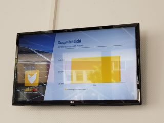 Am Donnerstag, den 13.08.2020, fand die offizielle Einweihung der neuen Photovoltaikanlage statt. Zusammen mit der Bürgermeisterin Frau Leidemann durften drei Vertreter der SV (v.l. Florian, Thilo und Adrian) die Anlage, die aus 90 Modulen á 330 Watt besteht, durch einen symbolischen Knopfdruck aktivieren. Wie viel Strom durch die Anlage produziert wird, zeigt von nun an ein Bildschirm im Eingang des Neubaus.
