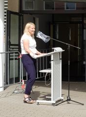 Natürlich ließ es sich die Schülervertretung auch nicht nehmen, eine Rede zu halten, da der Impuls zur Anschaffung einer Photovoltaikanlage von ihnen ausging. Abschließend bedankte sich auch unsere Schulleiterin Frau Bartsch bei allen Beteiligten für die gelungene Zusammenarbeit.