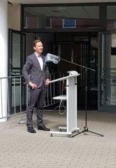 Feierliche Inbetriebnahme der Photovoltaikanlage auf dem Dach des Neubaus