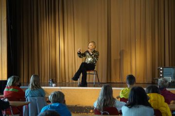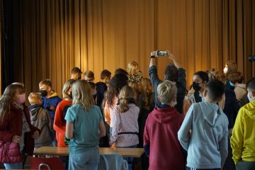 Am 07.10.2021 brachte die Dragqueen Veuve Noire ein Glitzern und Funkeln in die Aula des Schiller-Gymnasiums Witten. Die Botschafterin aus der Olivia Jones-Familie war aus Hamburg angereist, um 90 Minuten lang mit Schülerinnen und Schülern der sechsten Klassen über Vielfalt und Toleranz zu sprechen. Begleitet wurde sie von einem Fernsehteam des ZDF, das im Januar einen Beitrag über die Arbeit der Dragqueen als Botschafterin ausstrahlen wird. Die Kinder der sechsten Klassen erwarteten aufgeregt ihren außergewöhnlichen Gast. Veuve Noire berichtete den Schülerinnen und Schülern von ihrer Vergangenheit, in der sie wegen ihrer Homosexualität Hass, Anfeindungen und Verstoßung erleben musste, aber auch von den vielen Menschen, die ihr offen und unvoreingenommen begegneten. In einem angeregten Gespräch mit den Kindern, die offen auf all ihre Fragen Antwort erhielten, die sie teilweise im Unterricht vorbereitet hatten, betonte Veuve Noire immer wieder die Wichtigkeit, sich offen, tolerant und respektvoll zu begegnen, damit jeder Mensch in seiner Einzigartigkeit angenommen und gestärkt wird. Die Erziehung zu Toleranz und Respekt in einer bunten Gesellschaft ist am Schiller-Gymnasium ein zentrales Anliegen, gemäß dem Schulmotto „gemeinsam stark werden“, sodass das Projekt „Olivia macht Schule“ die Wertevermittlung des Gymnasiums sinnvoll ergänzt. Und wie lange eine Dragqueen braucht, bis sie sich gestylt hat, wissen die Kinder nun natürlich auch.