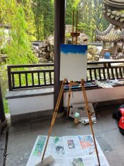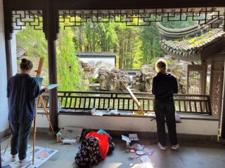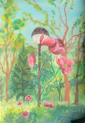 Vor Ort konnten die Schülerinnen und Schüler die vielfältigen Eindrücke der Flora und Fauna bei bestem Wetter auf sich wirken lassen und malerisch umsetzen. Unter dem Motto "Metamorphosengarten" erarbeiteten die Schülerinnen und Schüler in vier Stunden eine gestaltungspraktische Bildlösung. Die entstandenen Ergebnisse sind beachtenswert geworden!