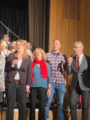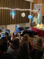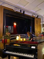 Dies sollte ein ganz besonderer Abend werden, denn nicht nur Schülerinnen und Schüler bewiesen ihr Talent in Klavier-, Gesangs- und Chordarbietungen, sondern auch ein Überraschungs-Ensemble aus Schülerinnen, Schülern und Lehrerinnen und Lehrern begeisterte das Publikum mit ihrer Interpretation des Klassikers "We are the world".