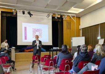 Die ca. 50 Teilnehmer:innen konnten so zwei Themen in jeweils 45 Minuten in kleinen Gruppen in dafür vorbereiteten Klassenräumen diskutieren. Damit die Ideen für den weiteren Schulentwicklungsprozess nicht verloren gehen, sind die Ergebnisse in einer digitalen Pinnwand kurz zusammengefasst worden.