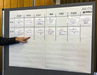 Als Format dafür wählte die Schule ein Barcamp. Hierbei handelt es sich um eine Veranstaltung, die ganz offen gestaltet ist. Die Teilnehmer:innen bringen Ideen für Themen mit, die dann zu Beginn kurz vorgestellt werden und dann – nach einer Interessensabfrage bei den Anwesenden – in einem Sessionplan in zwei Zeitschienen gruppiert werden.