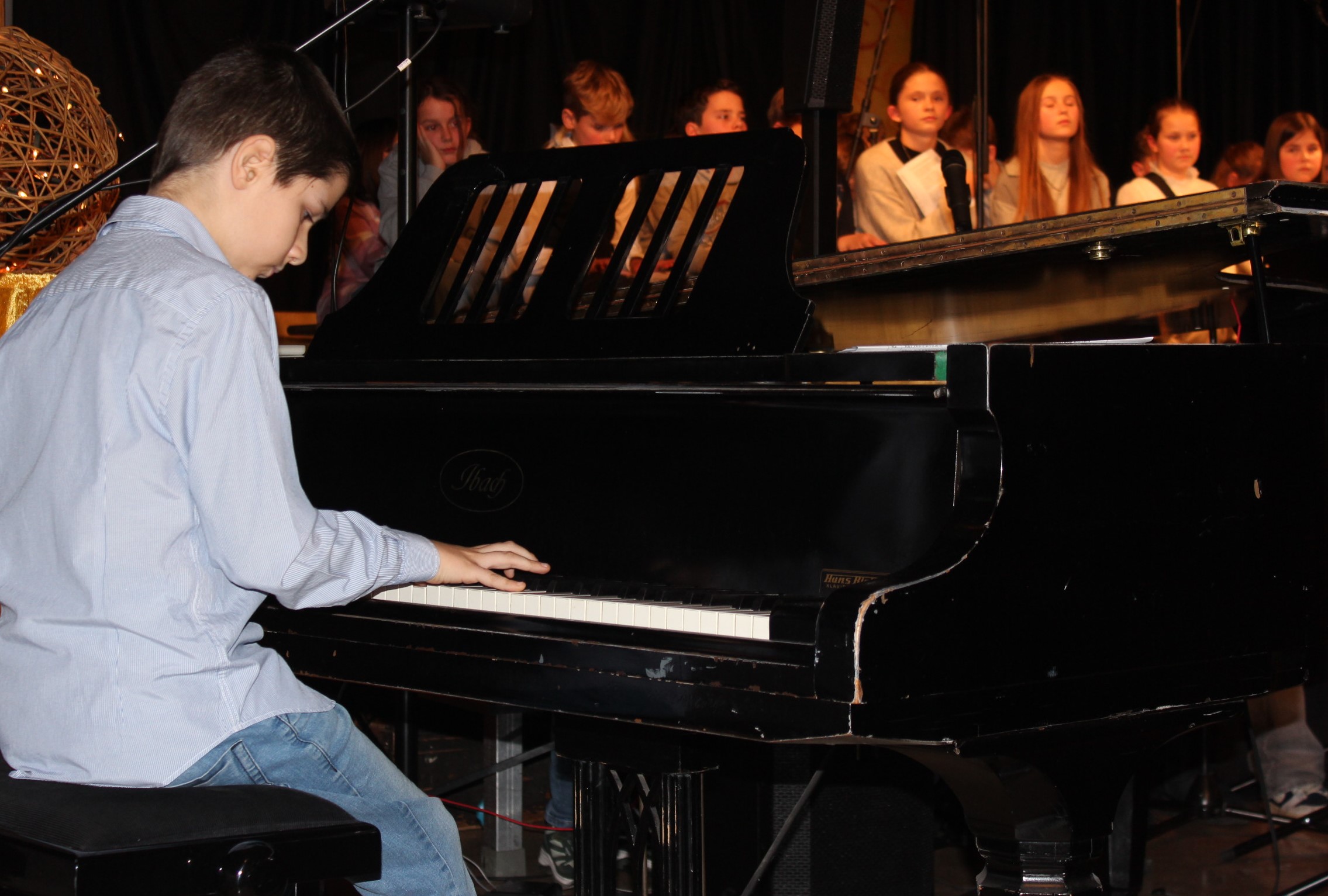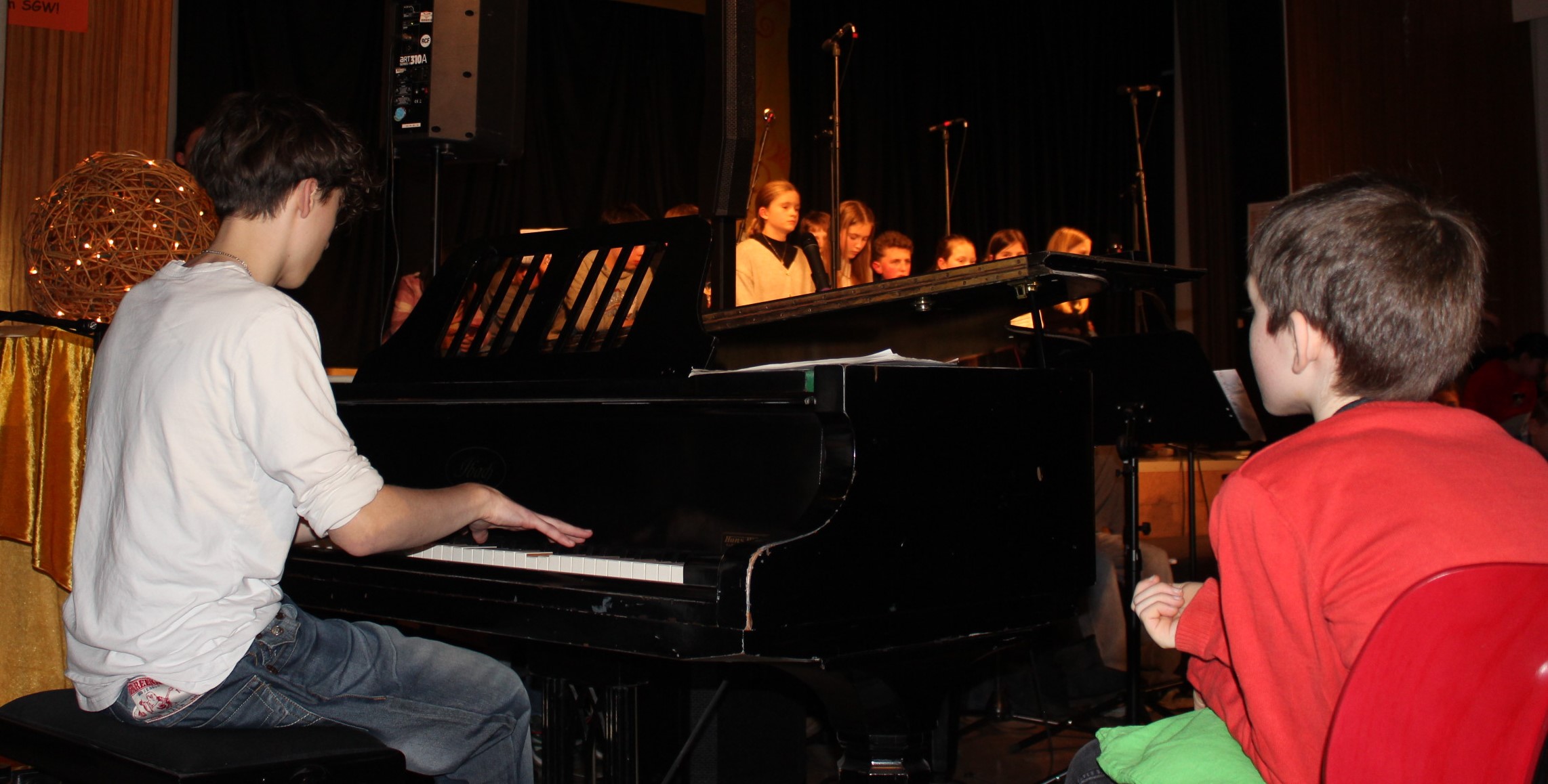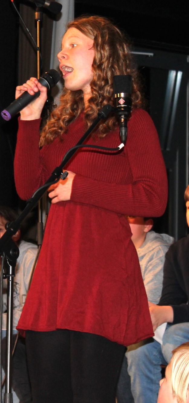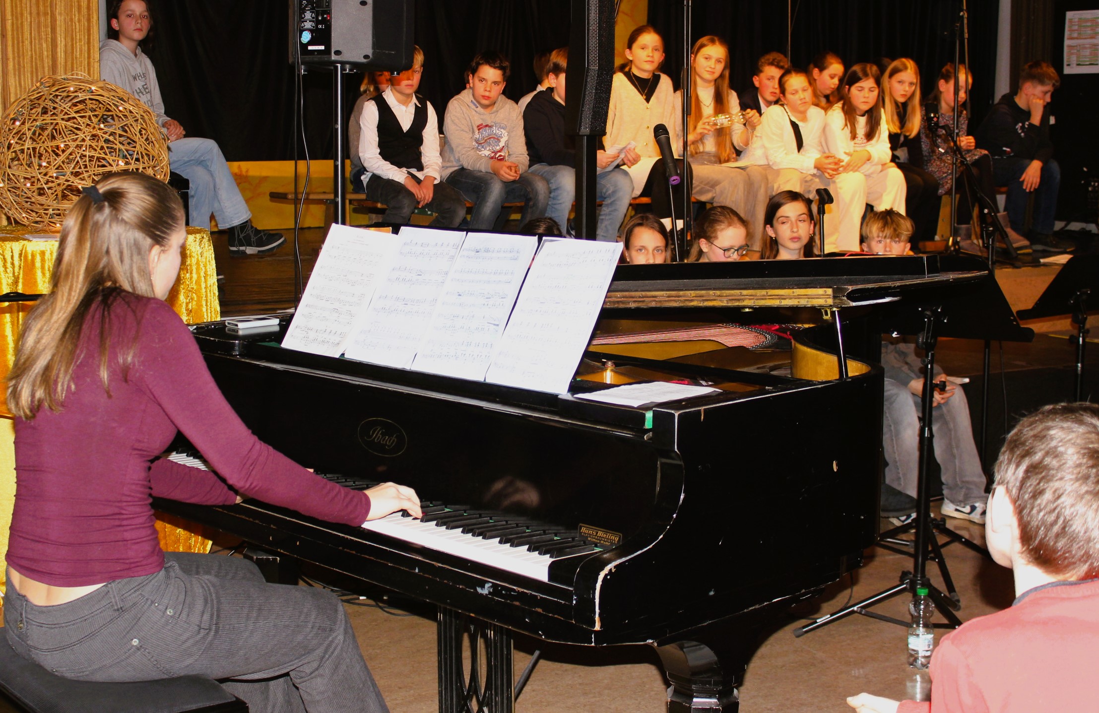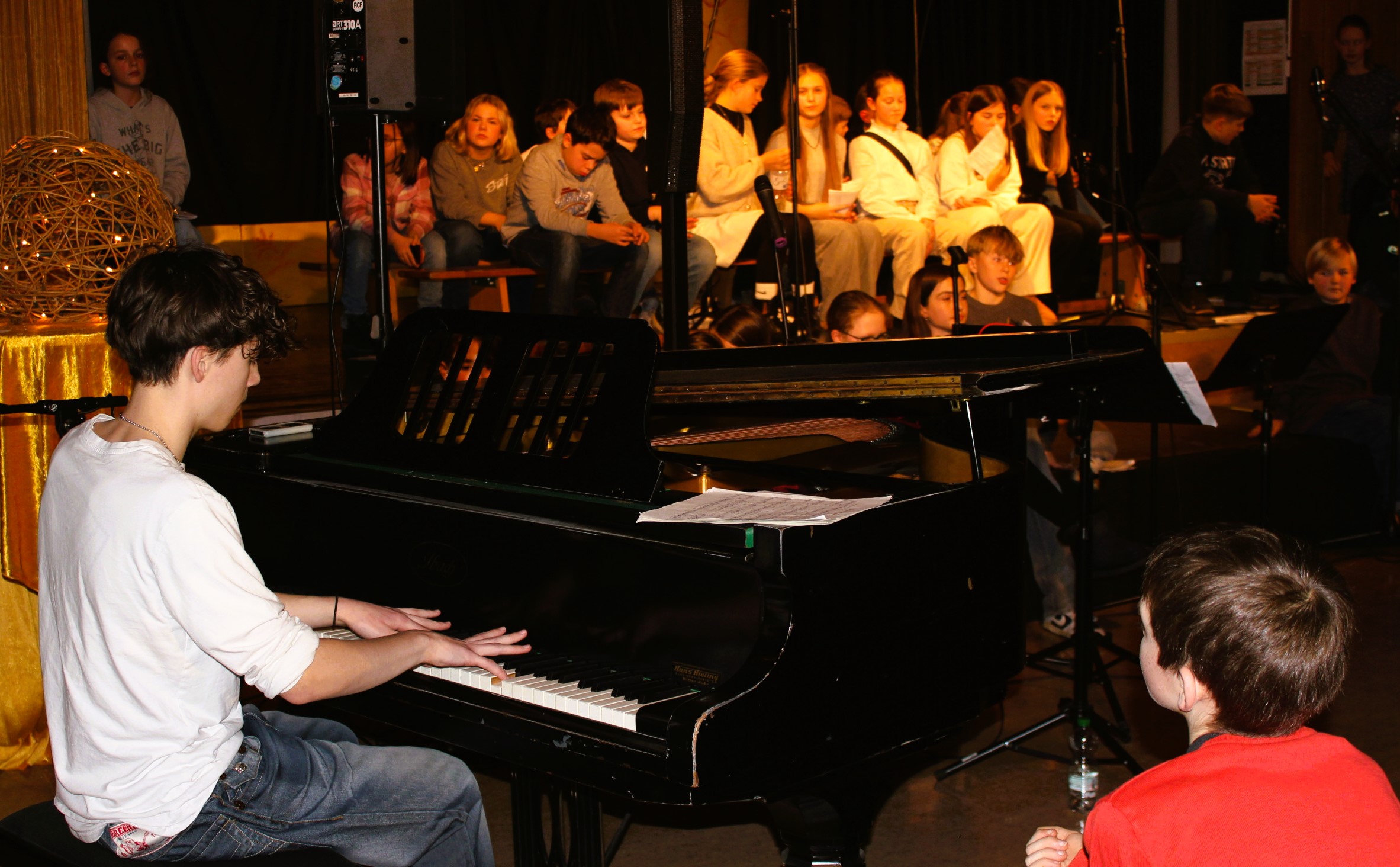 Die Solo-Künstler im Einzelnen: Luisa Fischer, 5a (Piano), Alessandro Lupo, 6c (Piano), Marie Fischer, 6b (Klarinette), begleitet am Piano von ihrer Mutter, Marietta Brünger 6b,(Piano) Julian Bachstein, 6a (Piano), David Vucovic, 8a (Klarinette), Juri Zimmermann, 8a (klassische Gitarre), David Batas, 8b (Piano), Lisa Bruhns, 9a (Gesang) Sarah und Sissi Stirnberg, (Gesangs-Duett), Klea Birkujow, 9c (Piano), Eddie Lelittko, 10c (Piano), Julie Nkweku, EF Gesang), Amelie Beyer, EF (Gesang) Johanna Schermuly, EF (Gesang+Piano). Das Finale bildete in guter Tradition der Song „We are the World“, bei dem die Solo-Parts sowohl von 6.Klässlern als auch den „Großen“ gesungen wurden.