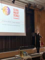Am 21. Januar 2025 war es wieder so weit, Veuve Noire hat als Familienbotschafterin der Olivia-Jones-Familie die Jahrgangsstufe 7 des Schiller-Gymnasiums mit auf eine bunte Reise durch ihre bewegte Lebensgeschichte genommen. Durch ihre offene und herzliche Art gelang es Veuve die Schüler:innen von manch einem Vorurteil zu befreien. Im Anschluss an den gelungenen Vortrag lasen einige Schüler:innen zuvor anonym formulierten Fragen vor. Hierdurch kam es zu einem sehr offenen und angeregten Gespräch, an dem sich viele aus der Jahrgangsstufe 7 beteiligten.